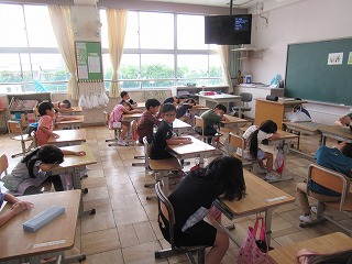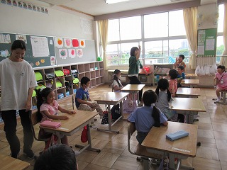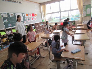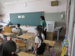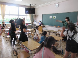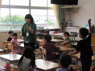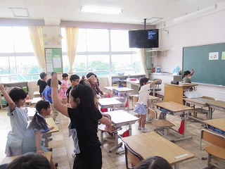 1年2組で、VATの先生に外国語活動を行っていただきました。子どもたちは、英語を聞いて、動作で表現していました。とても楽しそうに活動していました。