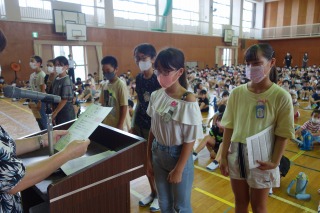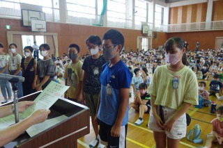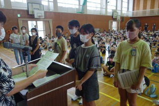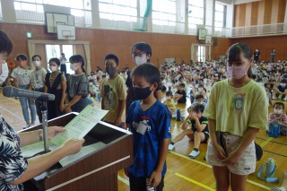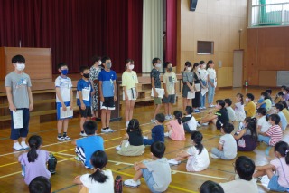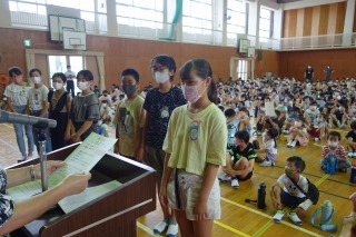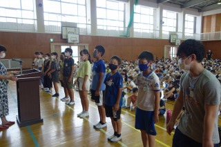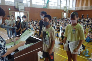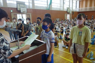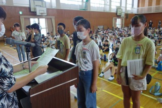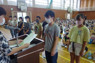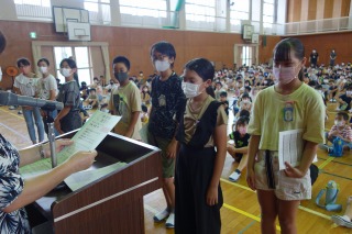 夏休み前集会 ―体力テストの表彰―