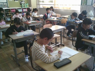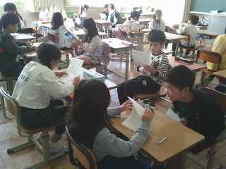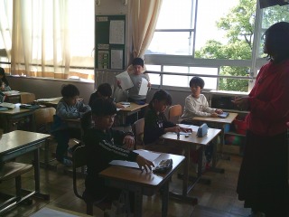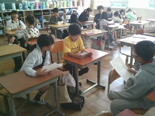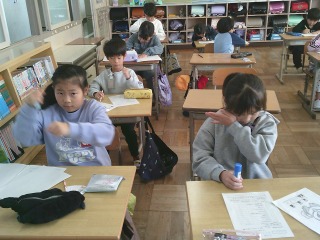 火曜日の朝は「みーわんタイム」から始まります。2年生は「アドジャン」を行いました。2組ではじゃんけんをしながら質問と回答を楽しんでいました。1組では、活動の後の振り返りの時間でした。笑顔でコミュニケーション能力を高めていきます。