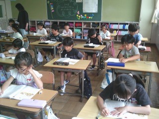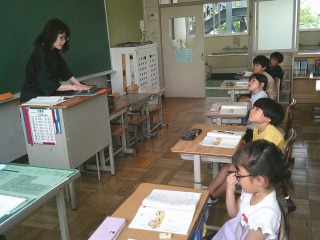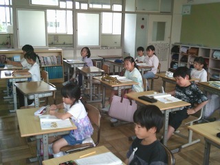 漢字の学習をしていました。モニターに映された漢字を確認しながら、学習を進めていました。