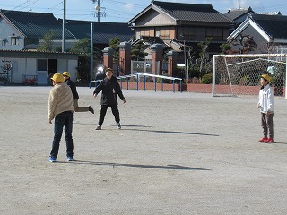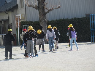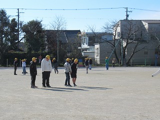 寒空の下、子どもたちは元気に運動場で遊んでいます。