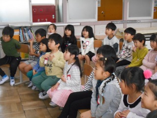 本日がPTAボランティアの方による、絵本読み聞かせのスタートとなりました。2冊の本を準備していただき、子どもたちが選んでいました。