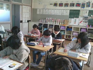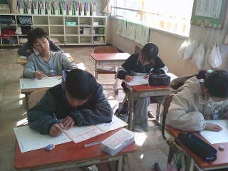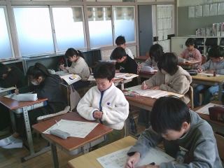 今日は硬筆でした。横書きの文を書く上でどんな決まりがあり、きれいに見える書き方についても学習しました。
