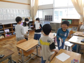 ペアになって、インタビューを行っていました。先生も一緒になって、子どもたちのことを知ることができます。