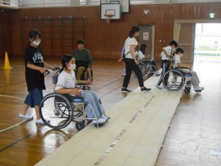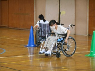 手話講座、車いす体験、点字講座、視覚障害者ガイドヘルプ、高齢者疑似体験に分かれて、5~6限に学習をしました。あま市福祉協議会の皆さんにご協力いただき、普段の生活で本当に必要な支援とは何か、これまでに考えたことのなかった視点をいただくことができました。