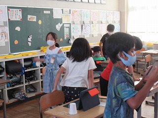 3年1組では、タブレットを使い授業が進められました。終わり時の約束を守り、終了をしていきます。友達どうし、教え合う姿がとても印象的でした。