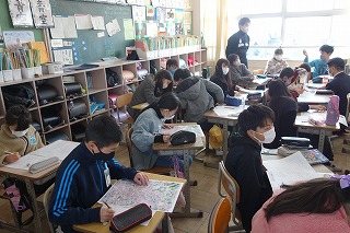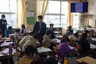 5年1組の総合的な学習は、外部講師にお越しいただき、修学旅行の分散学習の計画の立て方を学びました。