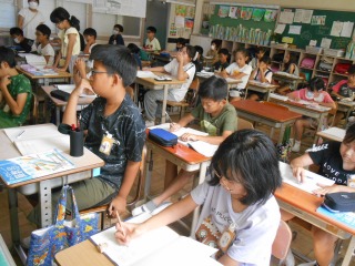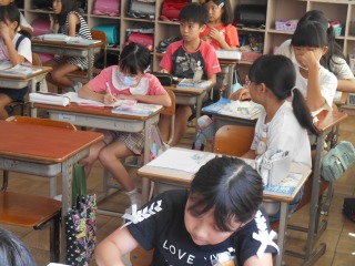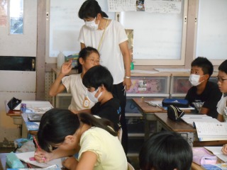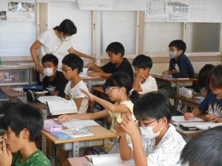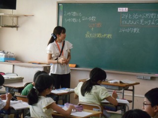 公約数の学習をしていました。共通する約数を、数字を並べて探していました。