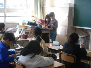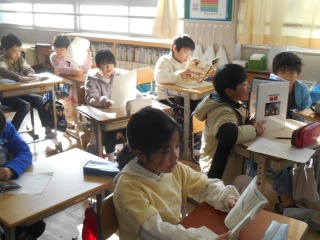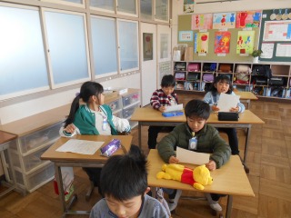 小さい頃の自分を原稿用紙に書いていました。発表の準備をしていました。