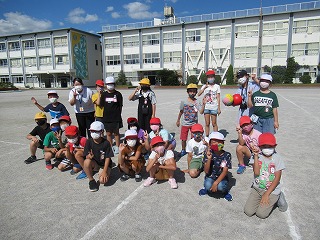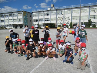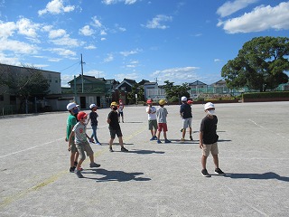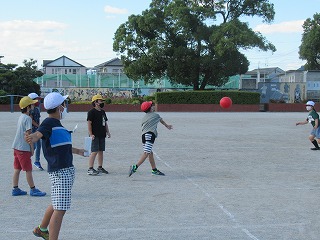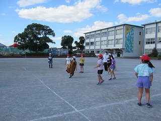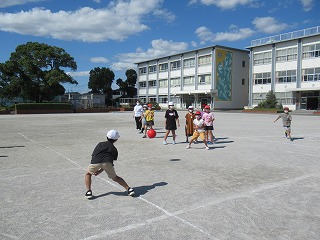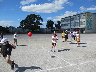 4年2組の子どもたちが、教育実習の先生とお楽しみ会を行っていました。やわらかいボールでドッジボールをしていました。みんなとっても楽しそうでした。