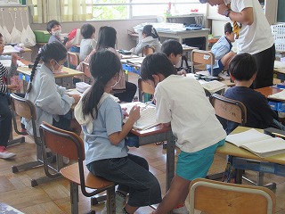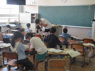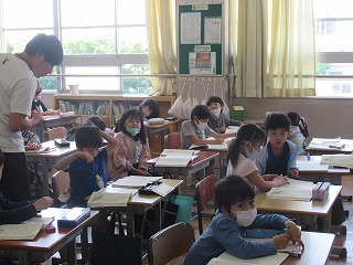2年2組は国語の授業を行っていました。教科書から指示された文章に線を引く作業に取り組んでいました。文章をしっかり読む習慣が身に付くといいですね。