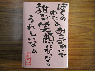 この募金は、地域の困っている子ども達やお年寄りのために使われるということです。募金と共に、己書で思いをこめて、だれかの笑顔につながりますように・・・。