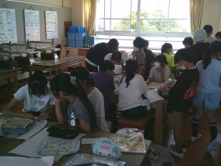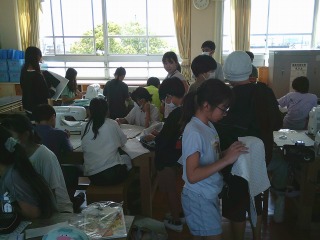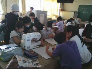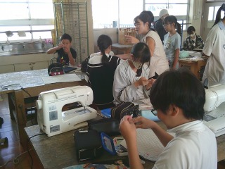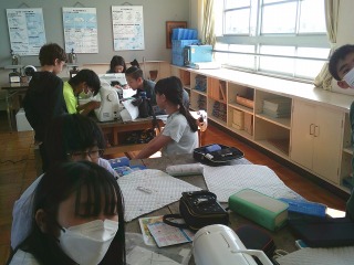 ナップサックづくりに取り組んでいました。ミシンを使ってわからないところは、先生や友だちに聞きながら進めていました。