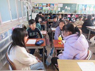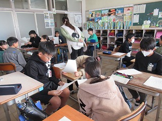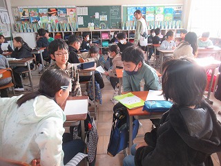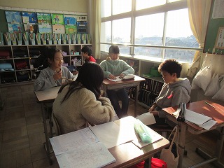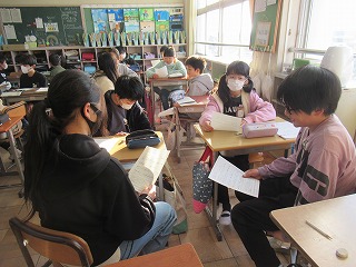 5年2組では、4人一組になり、みーわんタイムを行っていました。