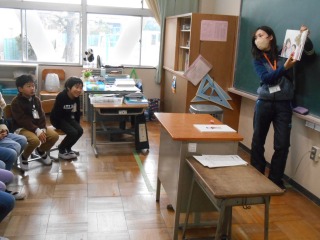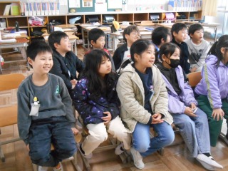 5年1組の先生が読み聞かせをしていました。いつもと違う、先生による読み聞かせも新鮮です。