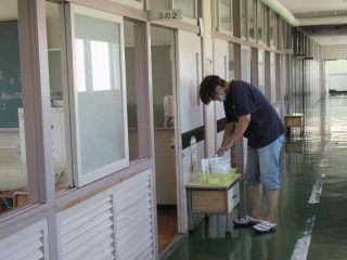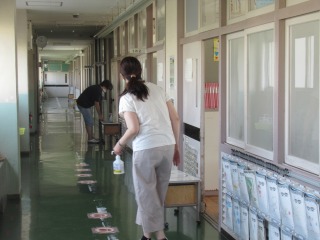 現在、愛知県で緊急事態宣言が出ています。美和小学校では、明日からの登校にむけてコロナウイルス感染症対策の準備をしています。子どもたちが自分の教室に入るときに手指消毒ができるように、校長先生、養護教諭の先生、校務先生方がアルコールの準備をしました。また、明日からしばらくは昇降口での検温も行います。できる対策をしっかりととっていきたいです。ご家庭でも検温・健康観察をしっかりとしていただくとともに、発熱等、体調に問題がある場合は登校を自粛していただきますようご協力お願いいたします。