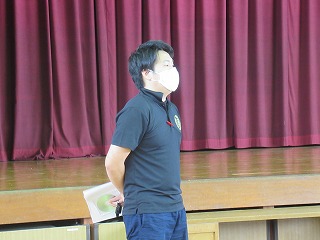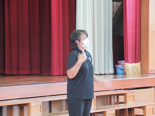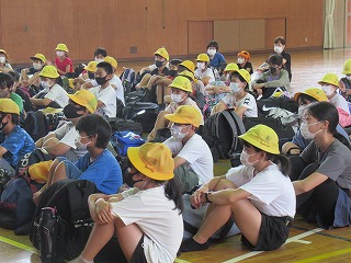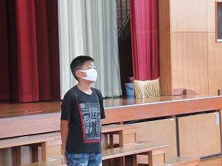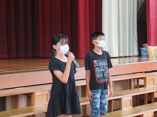 5年生が、体育館で開講式をおこないました。めりはりをつけ、みんなで協力する2日間にしてくださいね。
