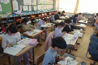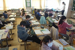 2年1組の国語は、「スーホの白い馬」の学習でした。挿し絵の順番を確かめることで、物語の流れを確認しました。