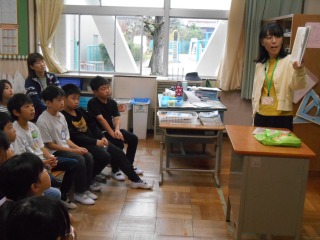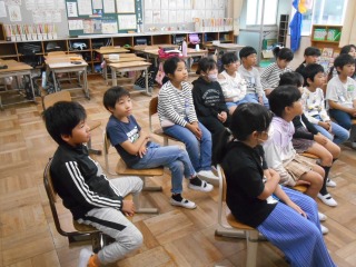 今日は中学年と特別支援学級の読み聞かせの日です。子どもたち全員が、絵本に注目して聞いて言える様子が写真からもうかがえると思います。