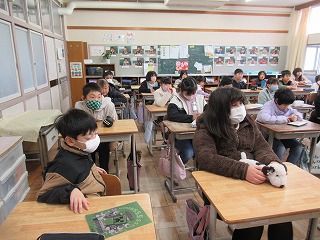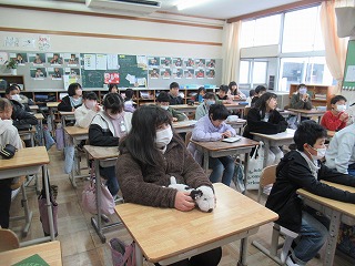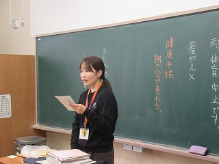 4年2組では、朝の会の時間今日一日の流れを聞いていました。