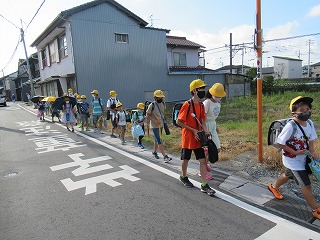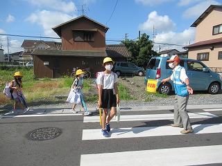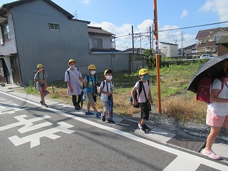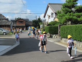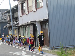 南門の通学班のようすです。今日は、とっても暑くなりそうです。