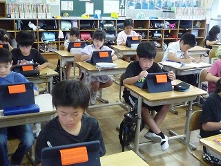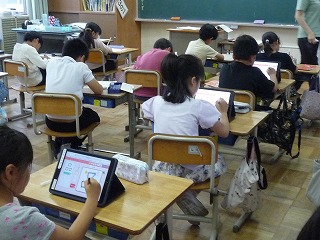 タブレットやプリントを使って漢字の勉強をしました。