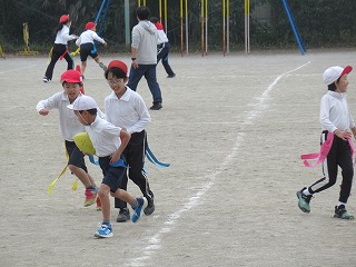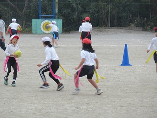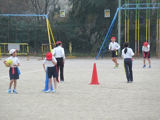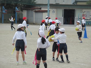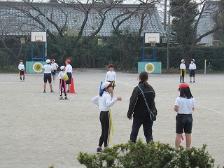 3年生が、運動場で合同体育をしていました。