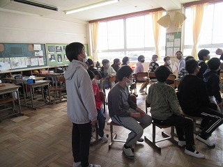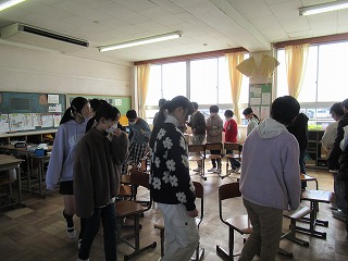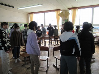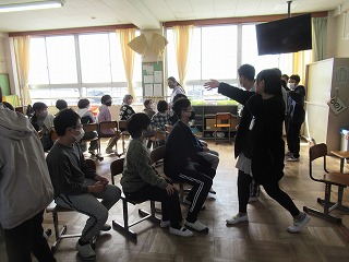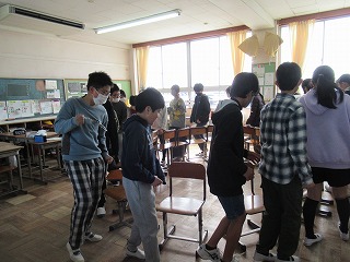 6年1組では、担任の先生も入り、椅子取りゲームを楽しんでいました。