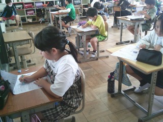 「式と計算のじゅんじょ」のテストを行っていました。順序を考えて計算することで、早く正確に回答できることが分かるといいです。