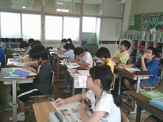 5年1組は社会の時間でした。社会で勉強しているさとうきびが、以前美和小学校の学年園でも栽培していたことを伝えると、みんなびっくりしていました。