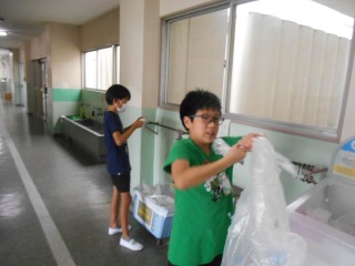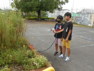 環境委員のみなさんが、花壇の花へ水やりとぷちぷちの処理をしてくれていました。あちこちで、委員会の子が学校のために活躍してくれています。