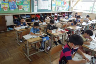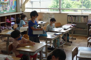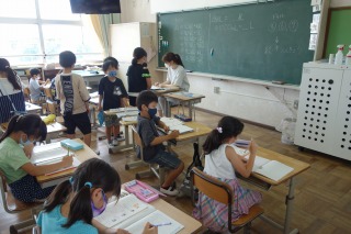2年1組の算数は、かさの学習でした。リットルとデシリットルを使った問題を解きました。