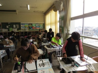 今日は、長半紙に挑戦しました。「新しい風」を一人5枚をめどに、練習しました。