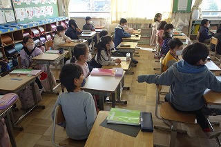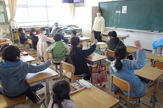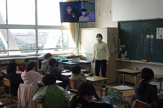 2年1組の学級活動は、児童会の「トーキングスマイル」活動の動画をみんなで見ました。