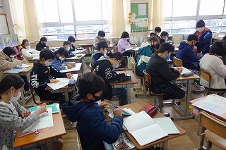 6年2組の算数は、計算ドリルの答え合わせを行っていました。