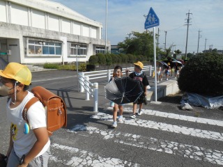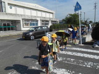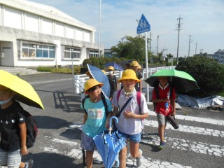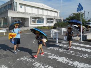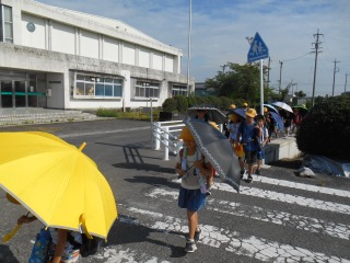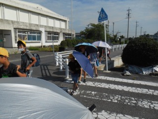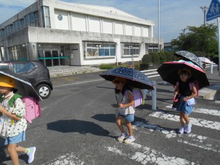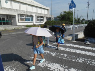 日差しをよけるために、東側に傘を差しているので、顔があまり移っていませんでした…。暑い中、あと2日登校です。