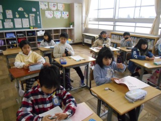 活動が終わり、振り返りをワークシートの書く時間でした。
