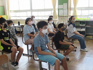 6年1組では、読み聞かせを行っていただきました。真剣に聞き入る子どもの姿が見られました。