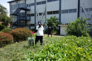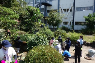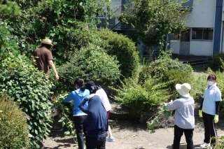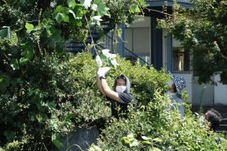 北庭の草が伸びてきたので、職員作業で北庭の整備を行いました。とても暑い中でしたが、みなで協力して草刈機で刈った草を片付けたり、木に巻きついたつるを取り除いたりしました。北庭がきれいになりました。