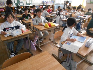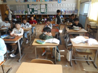 授業が始まるところでした。みんな教科書・ノートを忘れずに準備できていました。