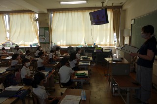 3年2組は、身体測定の前に、養護教諭の先生から保健指導を受けました。