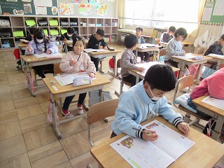 1年2組では、書写ノートに取り組んでいました。丁寧に書こうとがんばっていました。
