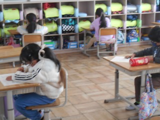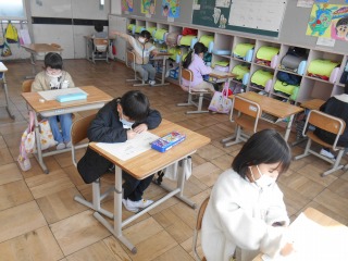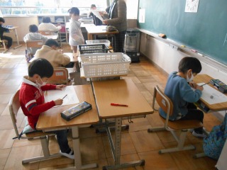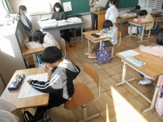 暗算のテストをしながら、復習プリントに取り組んでいます。これまでの学習の成果を発揮してほしいです。