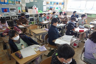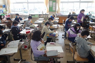 3年2組の算数は、図形の作図プリントに取り組みました。
