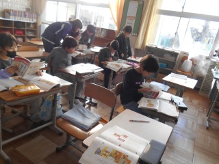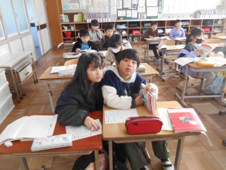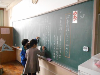 「故事成語」の意味を調べていました。わかった言葉から、黒板へ代表児童が記入をしていました。