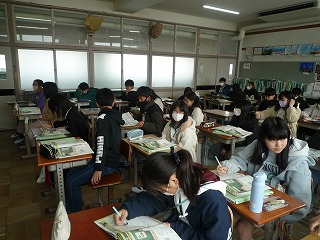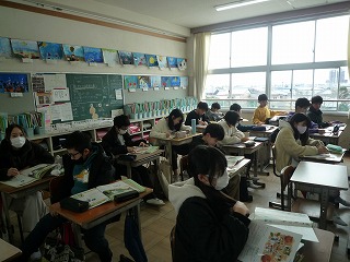 地球上で起きている環境問題について、周りの子と対話しながら英語で考えました。