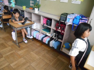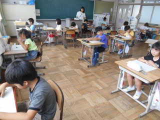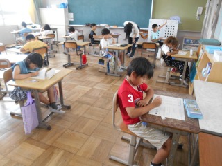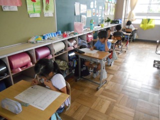 3けたと2けたのひき算のひっ算のテストを行っていました。みんな集中して解いていました。