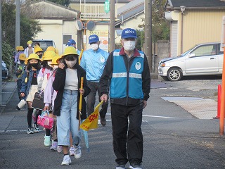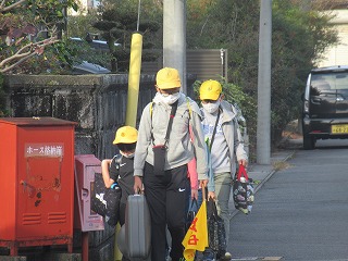 西門の通学団の様子です。今日も見守り隊の方々に見守られ、元気に登校できました。