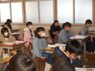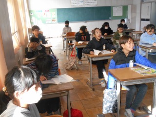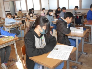 教科書を見ながら、初めて歌う歌を練習していました。