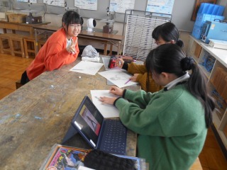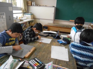 版画の下書きを描いていました。どんな作品になるのか、楽しみです。